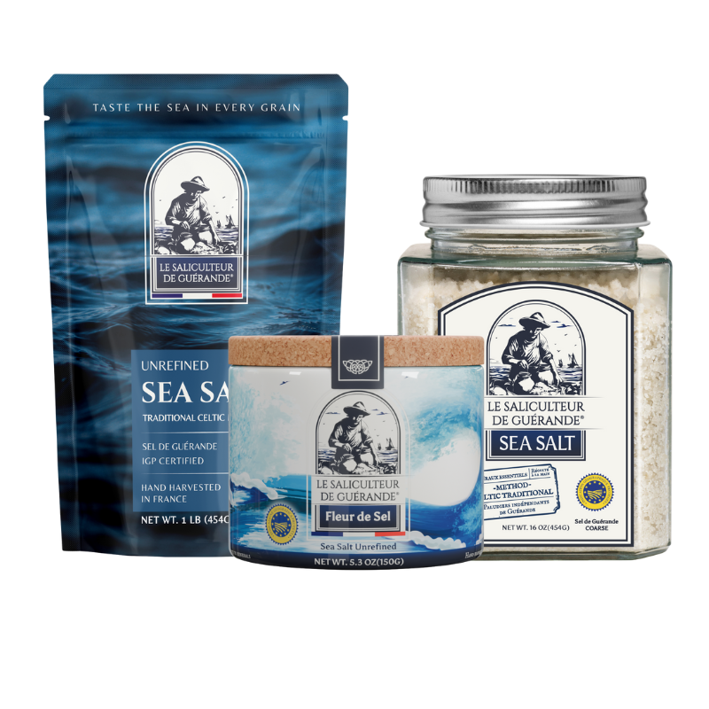 Embracing artisanal techniques, our Guérande Salt carries a rich blend of oceanic elements, expertly harvested by hand.